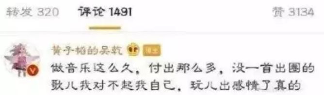 这本来是一个,感叹自己做音乐不出圈的事情,但因为上面那个“戏子”,黄子韬反而被人抓住了话柄追着骂