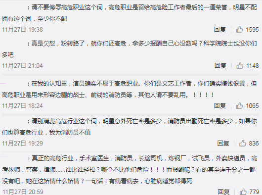对于这些艺人的发文,很多网友都吐槽不止,觉得如果你哀悼高以翔没问题,但不能以此来将明星算入高危职业范围内,真的很搞笑。当然,也有网友认为明星的某些工作的确高危,比如爆炸戏。