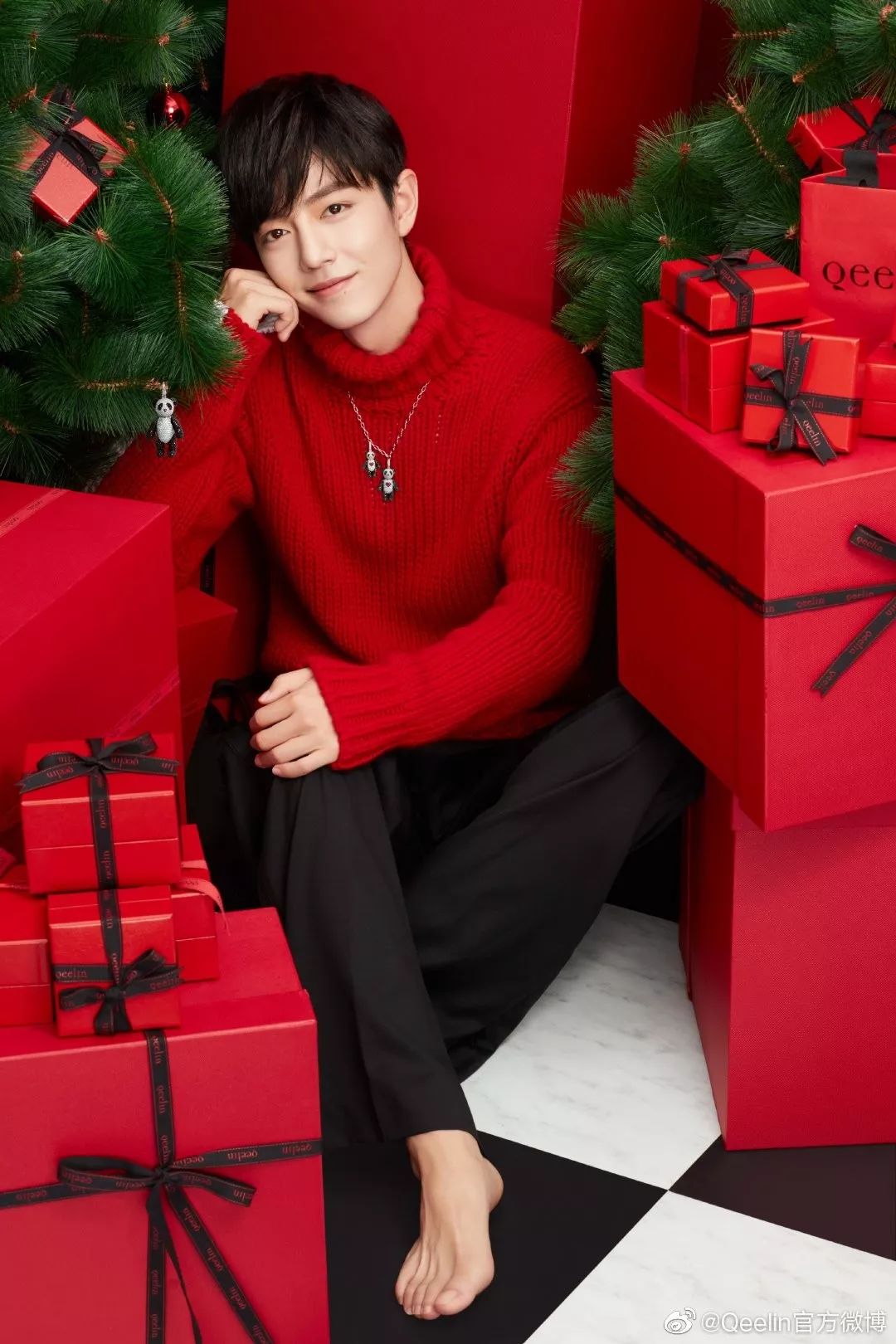 ▼肖战 × Qeelin 品牌挚友圣诞宣传图,红色毛衣,治愈系笑容,奏响了节日的赞歌,躲在圣诞树中偷偷地制造惊喜,期待圣诞节的暖心相遇。