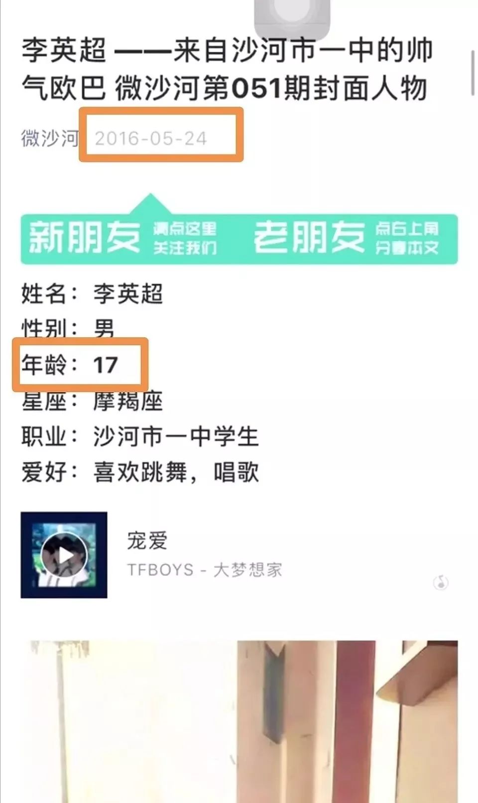 而帖子中所提供的17岁,再结合当时的16年,怎么算他都是99年生的,而并非现在官方所显示的01年生。