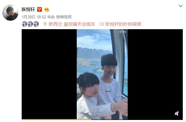 翻了一下——天天今年1月份在微博上晒出了一段与妹妹在缆车上的视频,微博定位显示是新西兰。显然,这名网友并没有认错人。