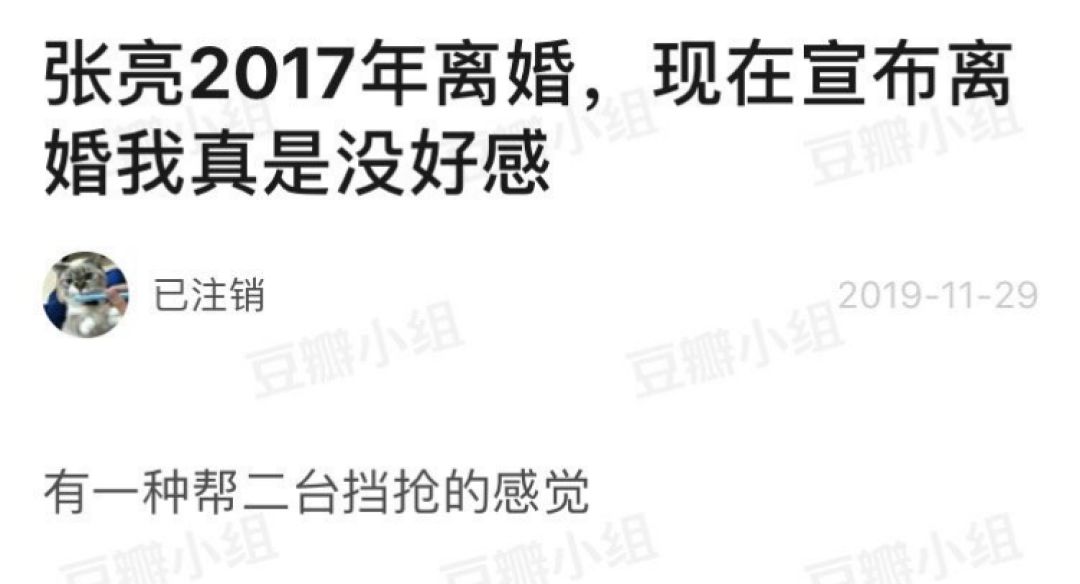 在此常理下, 已经隐藏离婚两年的 张亮突然公布离婚,对个人的事业显然是不利的——人设塌了呀!