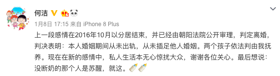 没想到今年1月网上曝出了何洁产下三胎的消息,新男友刁磊的婚姻状态也是热议不断,因此网友们又陆续站队赫子铭。