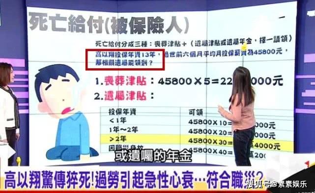 据台媒那边的报道得出,高以翔投保的年资是13年左右,也就是说这一个年份需要按投保的钱数来算,而落实到他身上的丧葬津贴应该是他5个月的保资,一共多少钱呢?