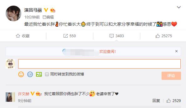 看此次马丽宣布怀孕的文中,也是直言最近长胖了不少,而许文赫在回应马丽的文中,也有提到自己跟着长胖了很多。两人这样简短的发文宣布喜事,也是字里行间透露着喜悦的心情。