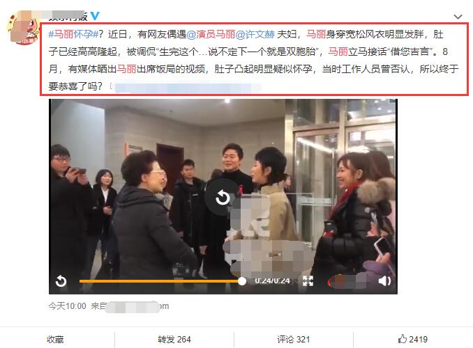 除此之外,还有网友偶遇马丽身穿风衣,肚子隆起的画面,当时也是马丽这样的造型与身材,也是被看作怀孕,不过马丽当时却回应“借您吉言”。