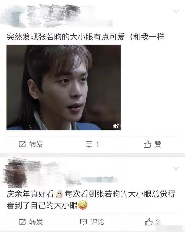 网友们态度的转变,也和《庆余年》自身质量过硬有关,剧情贴合原著,没有魔改,全员演技在线,观众还是容易被吸引的。《三生三世》中的赵又廷、《宸汐缘》的张震,在剧集刚播出时也都曾因为造型太丑被吐槽,不过因为“整容般的演技”让观众自带滤镜,播着播着就没人嫌丑了。现在观众对《庆余年》好感度飙升,连带着对张若昀的“大小眼”也觉得搞笑又可爱,很多人仿佛还看到了自己。