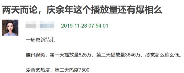 这样的结果,可是和刚开播时大相径庭。根据网络数据显示,剧集上线第二天单日播放排在第二位,为3646万,这个成绩很一般,当时就有网友盖章《庆余年》要扑了。