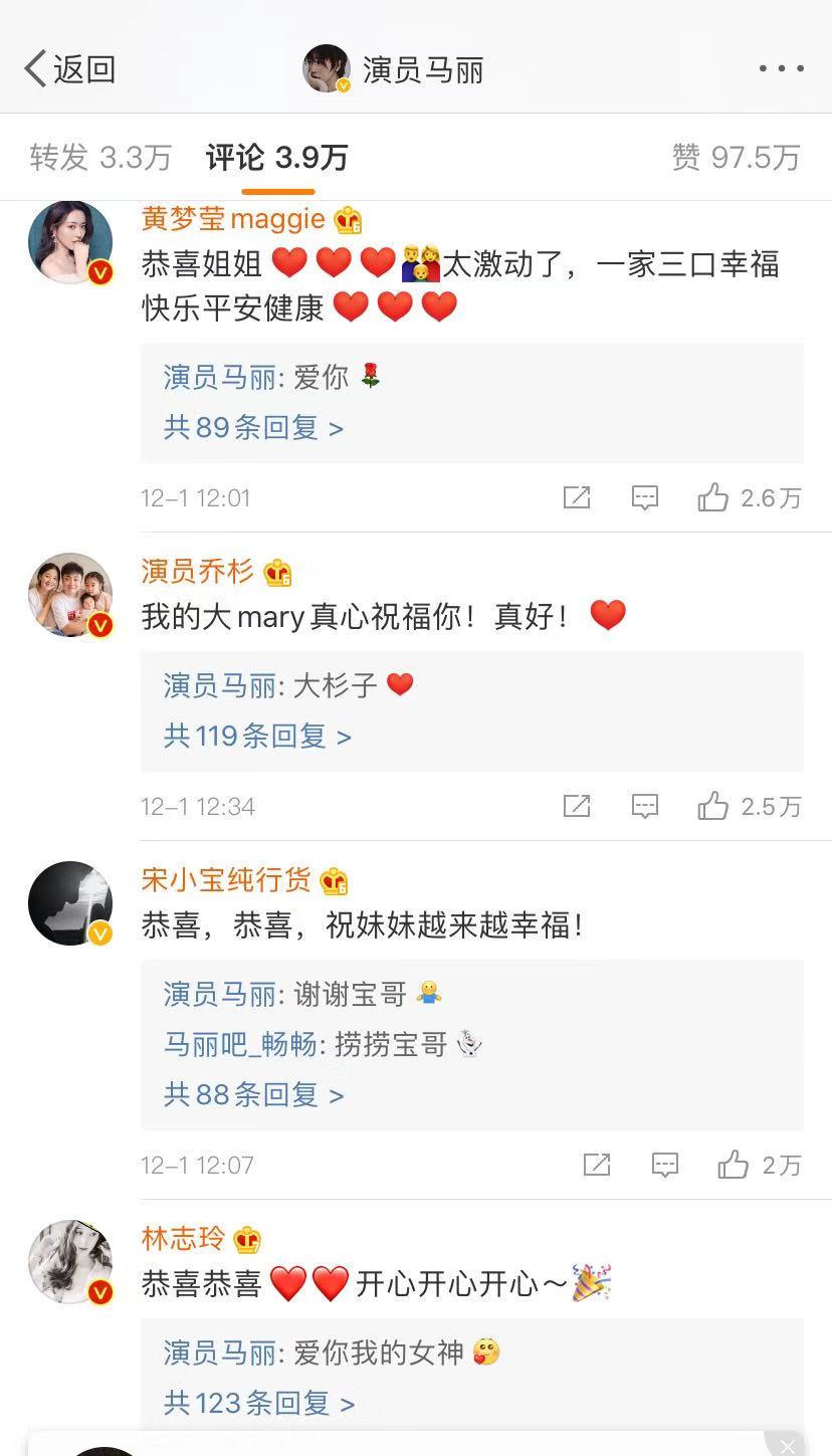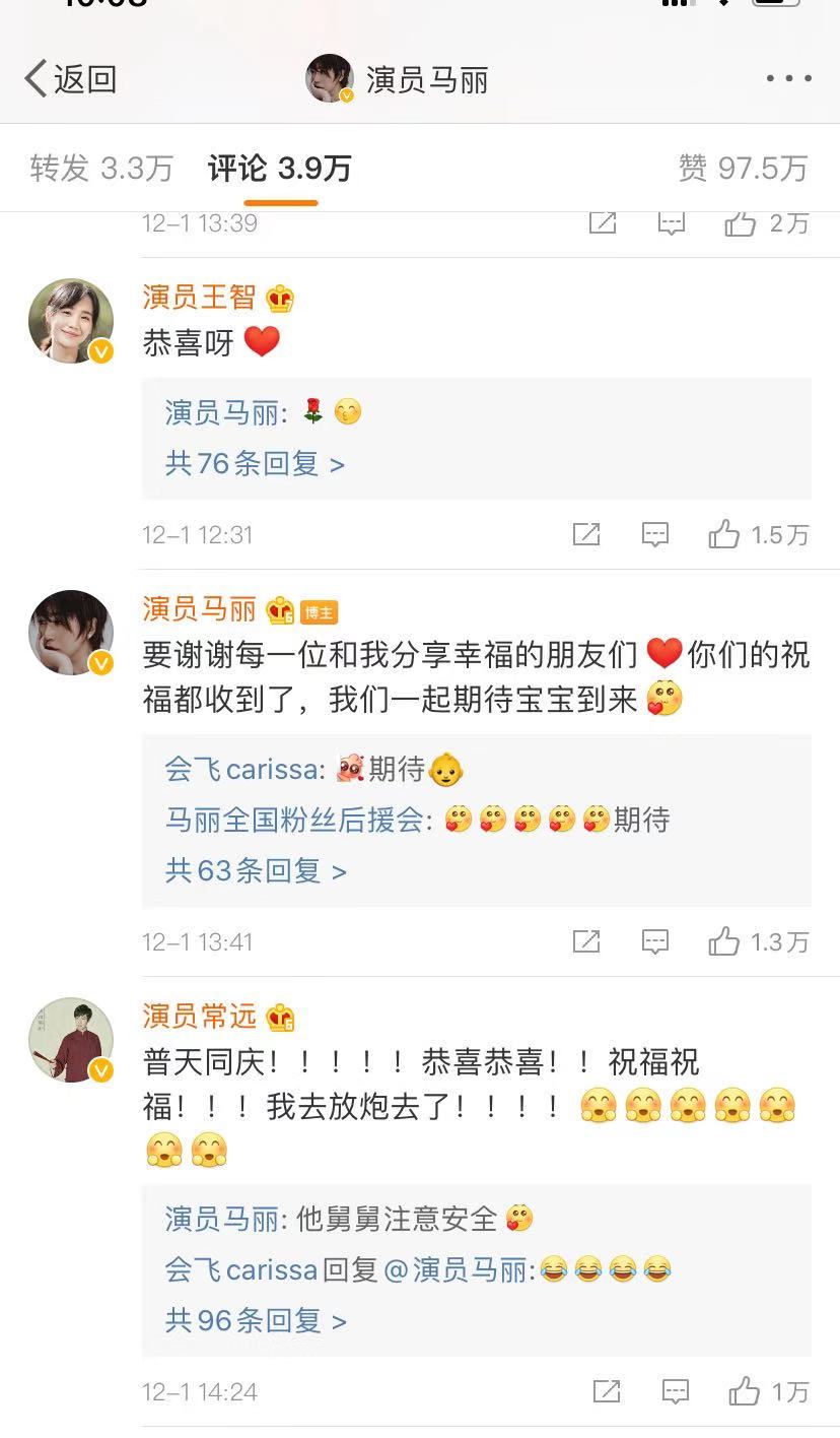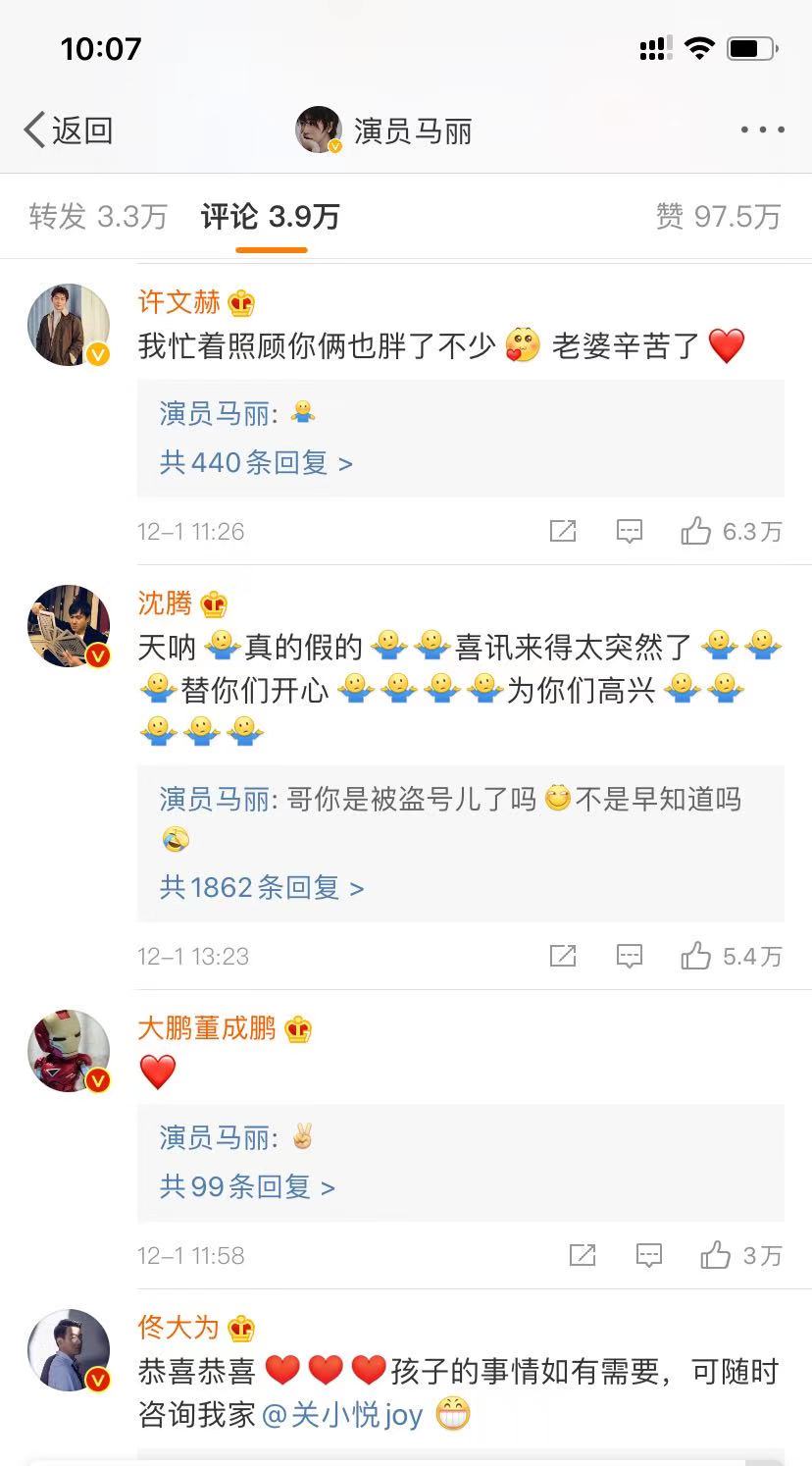马丽在娱乐圈的好友真不少,特别他们《夏洛特烦恼》的剧组及主要演员都送来祝福,比如沈腾、王智等。