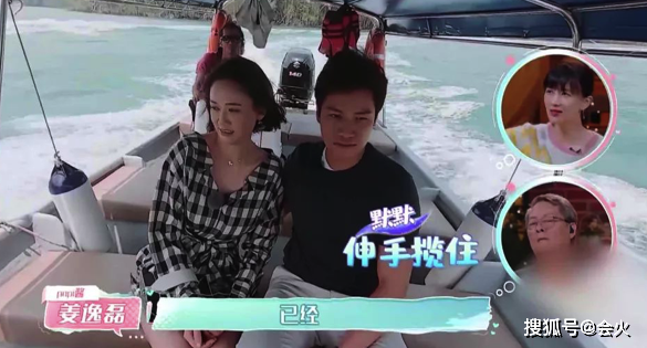 坐游轮,用“绅士手”半围住陈乔恩,手动护住她的安全。