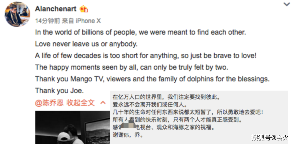 男方随后也转发,对大家的祝福表示感谢,细翻其以往的动态记录,也全部是和陈乔恩相关。