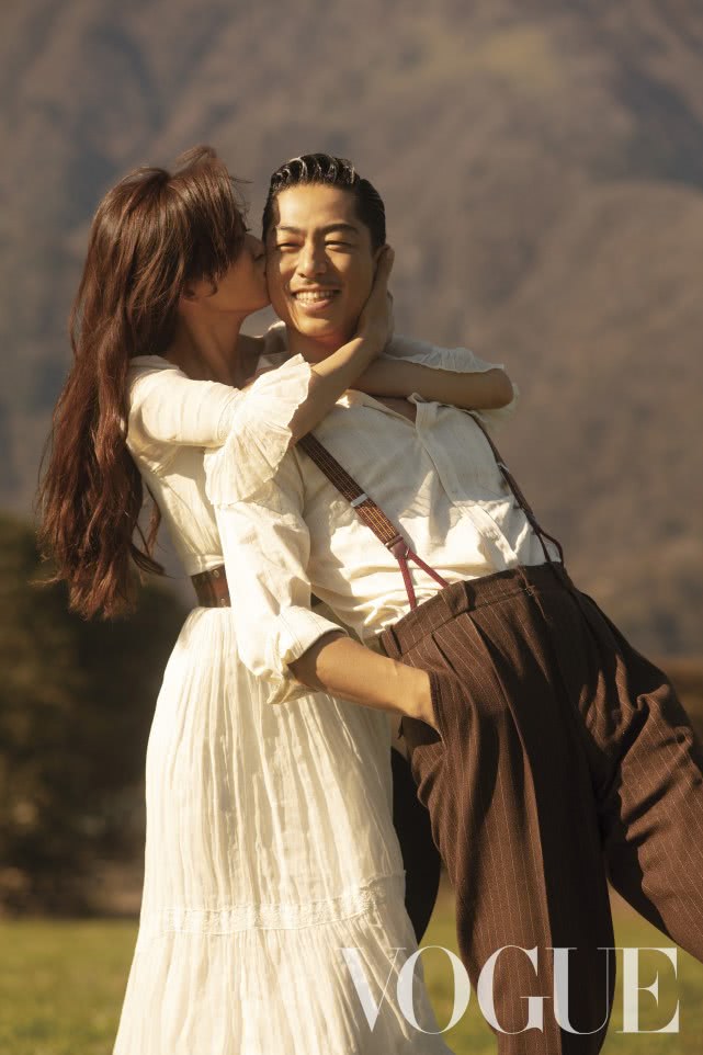 林志玲与日本男星AKIRA举行婚礼之后,两人以夫妻档拍摄了不少作品,除了有歌曲MV之外,还为时尚杂志拍摄写真。很多人说,AKIRA配不上女神林志玲,不过这一幕,志玲姐姐主动亲吻老公,力证她对AKIRA的热情与爱。林志玲透露,她与老公正式互动是一同演出舞台剧,他们需要用日语古文来说台词,志玲没有自信,AKIRA安慰她说:“你不要担心,我们一起努力。”那一刻,志玲就爱上了他的温暖与笑容。