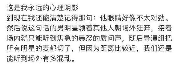 参与录制的观众称到现在都无法缓过来,更不要提全程陪在旁边的艺人们了。