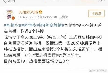 而近期《陈情令》在韩国电视台播出,仅播出第一集20分钟后便登上韩国热搜榜。