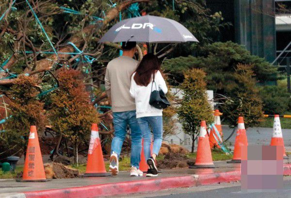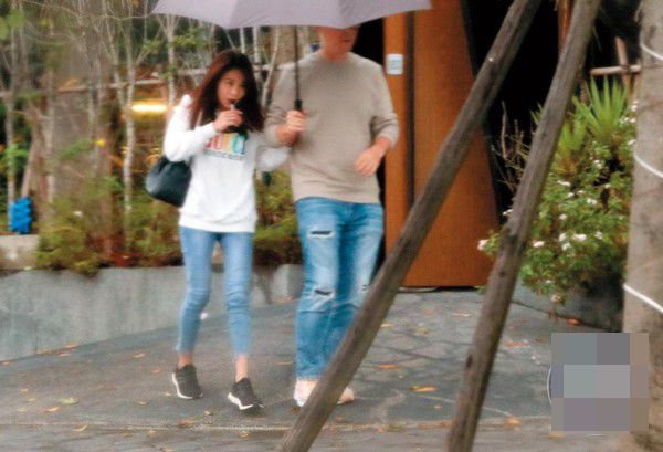 二人紧紧地靠在一起有说有笑,俩人一路上更是十指相扣大秀恩爱,赵元同还绅士地为GUCCI女撑伞。