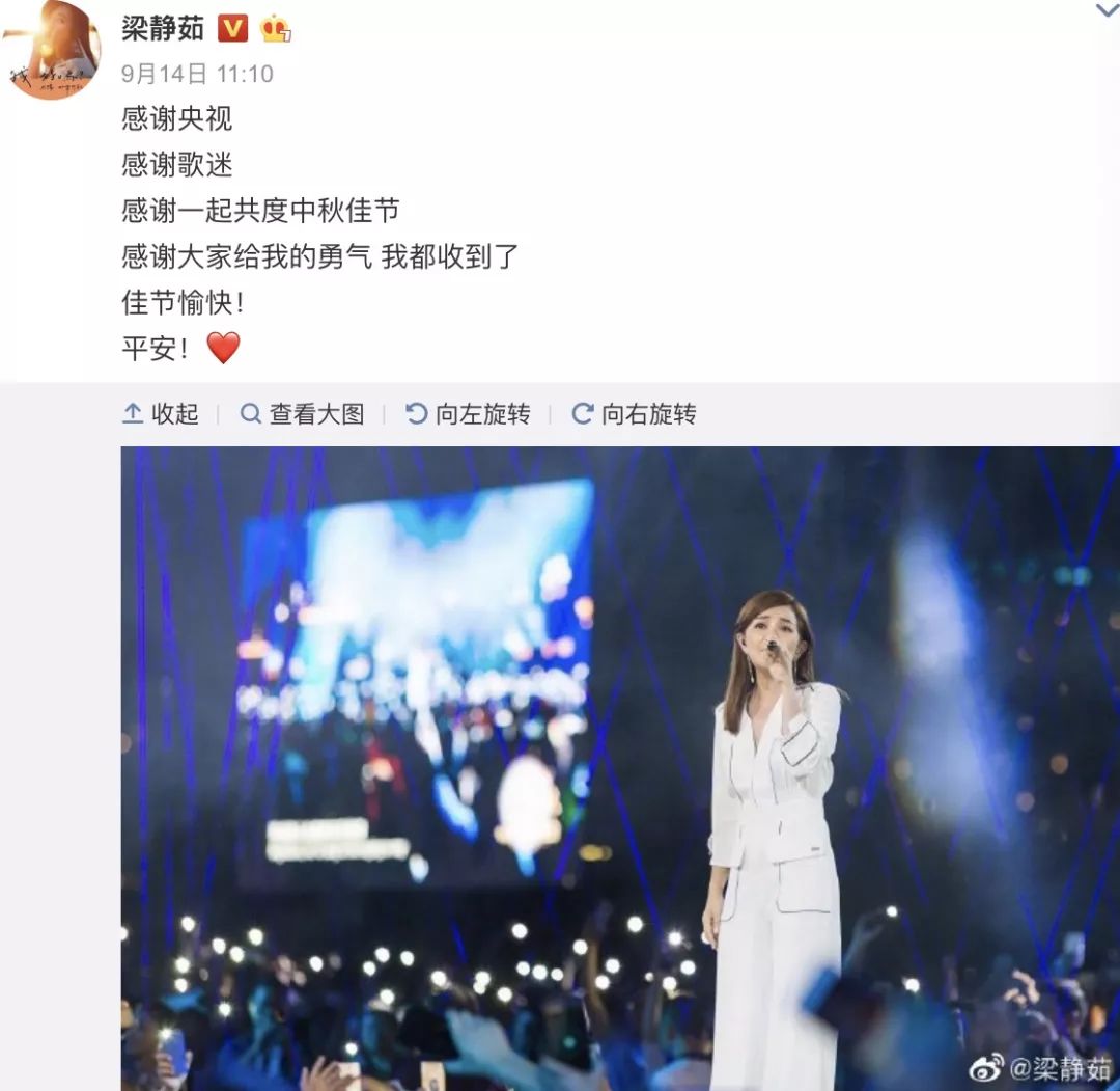 经过几个月调整,梁静茹重新振作了起来继续工作,参加了央视中秋晚会,全场大合唱《勇气》似乎也是为她打气加油。