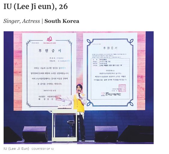 15、IU被列入2019亚洲慈善英雄 去年开始捐赠5百余万