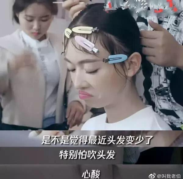 因为每天都早起晚睡的作息,吴谨言现在最害怕的就是吹头发,头发越来越少了,很是心酸。当代秃头女孩的日常叹息……