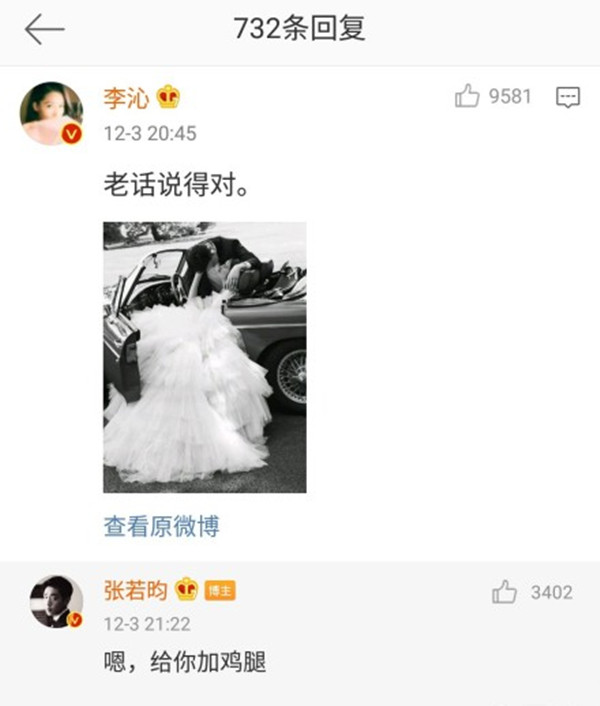 但是就在网友们还在为“饭碗CP”这甜美的糖磕的上头的时候,李沁高情商的回复瞬间亮了,她回复:“老话说得对”。并附了一张张若昀和唐艺昕的婚纱照,而婚纱照上的唐艺昕正是身穿白色婚纱。