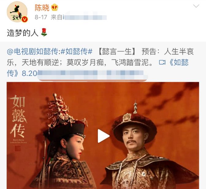 当初于正捧红陈晓,陈晓却在离开于正后和他再没有多少交集,甚至《延禧攻略》和《如懿传》正面硬刚的时候,陈晓帮忙为后者转发,却只字未提《延禧攻略》,可见他和于正关系已经破裂难以弥合。