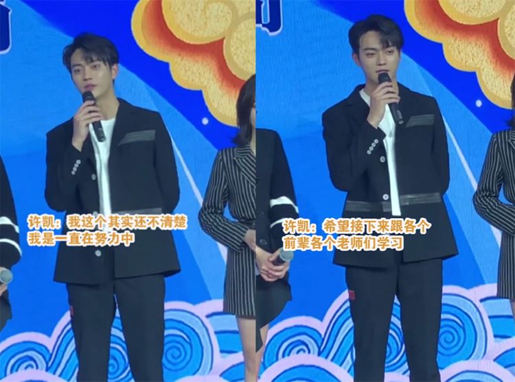 对此,许凯的回答就圆润得多,也谦虚得多了。他放低了自己的身段,表示自己对这件事也不是很清楚,但一直在努力中,希望能跟各位前辈和老师们多多学习。
