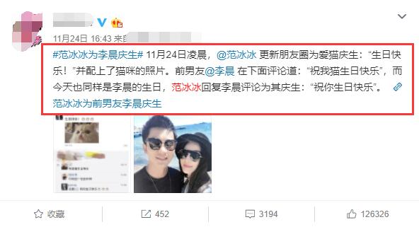 然而在两人分手之后,前几日李晨生日时,网上还曝出范冰冰在朋友圈为李晨庆生的事情。