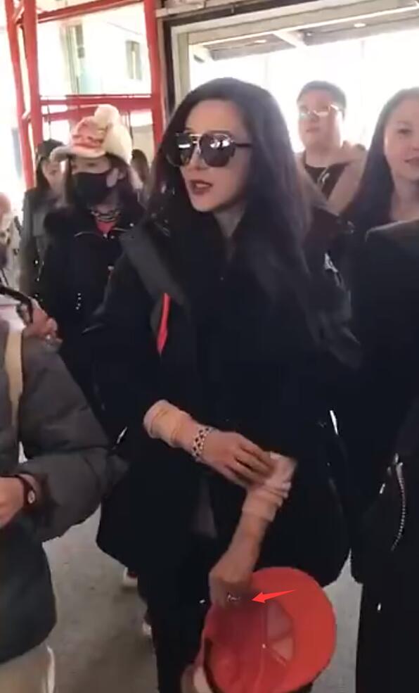 而除了“大肚”照之外,范冰冰在机场中似乎还在刻意展示自己的大钻戒。