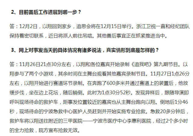 所谓看到的两点到达现场的救护车是叫来的第三辆,这辆车并没有用到,最后再次表示了歉意。这份采访算是给出了正式的回应,对于突如其来的意外是任何人都不想看到的,如今最需要的就是完善自己的拍摄方式与体制,让高以翔的事情能够妥善处理吧。