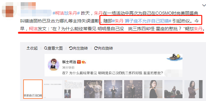 其实这是一个话题热度,因为话题的标签就是“朱丹,狮子座不允许自己犯错”,所以网友才会觉得朱丹因为口误而怪罪到星座上来。而柯洁又刚好发表了这样一条微博,所以对号入座也难免。