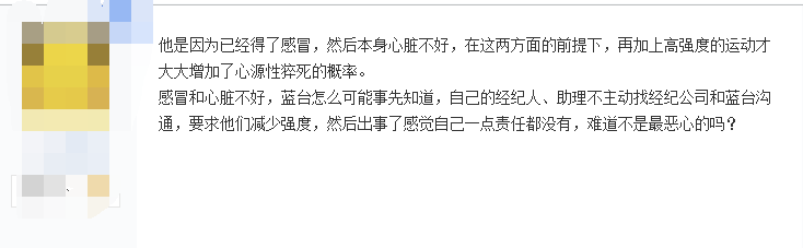 事情明明就是蓝台对于事发突然而没有及时正确地急救,导致高以翔悲剧的发生,怎么可以扭曲到别的台也不一定能够救活,蓝台救不活怎么了?贴吧粉丝还为蓝台已经道歉声明两次感到别却,觉得已经道歉了还要怎么样的态度也是有点难以接受。