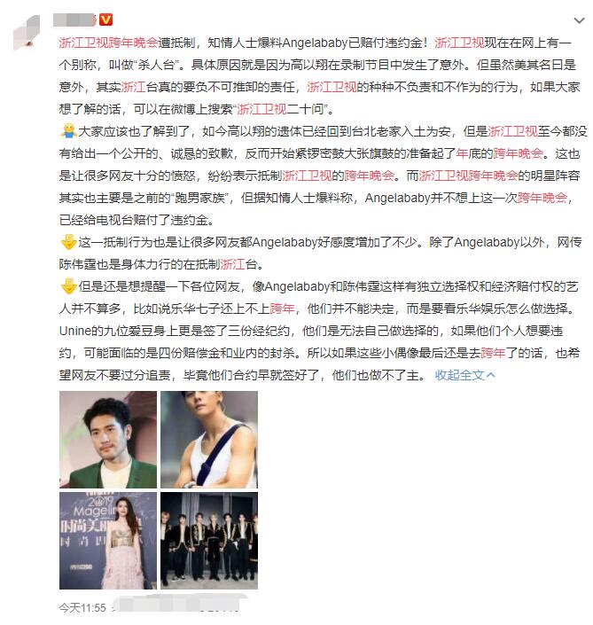 12月5日,在被网友口诛笔伐多天之后,接连被曝出跨年晚会遭明星抵制以及赞助费撤资的事情,浙江卫视终于就高以翔事件做出公开说明并道歉,然而网友们对于浙江卫视此举,却完全不买账。