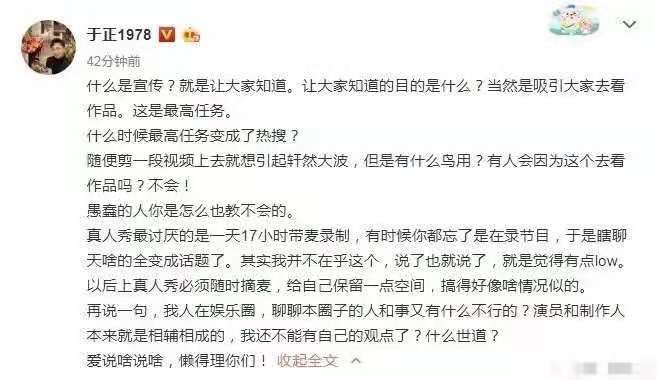 于正:节目组请不要恶意剪辑,我当时只是没带麦,随便聊聊而已!