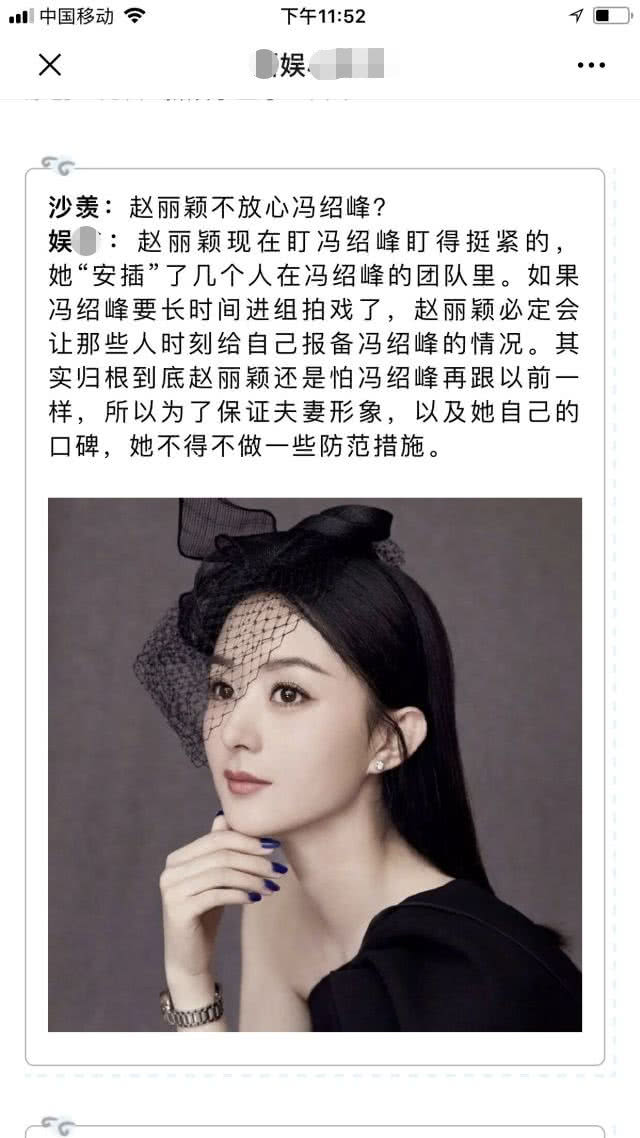 原标题:担心老公出轨?网曝赵丽颖安插眼线,要求时刻报备冯绍峰的情