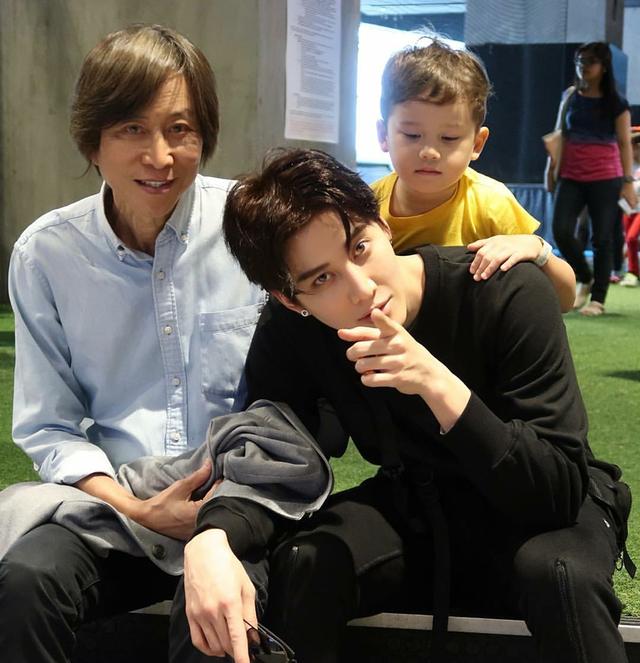 原标题:Mike父亲节晒祖孙三代,与爸爸同框比心,儿子小咖啡献吻颜