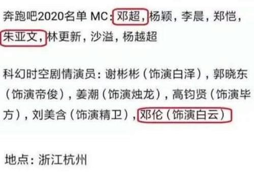 近期,网上曝光了《奔跑吧2020》常驻嘉宾名单,和最开始的配置差不多,具体人员有:邓超、李晨、杨颖、郑凯、朱亚文、林更新、沙溢、杨超越。