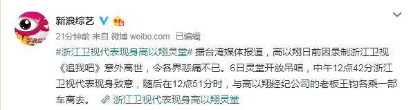 一直处于风口浪尖的浙江卫视,这天也派代表前往灵堂悼念高以翔,现身时间一共九分钟。