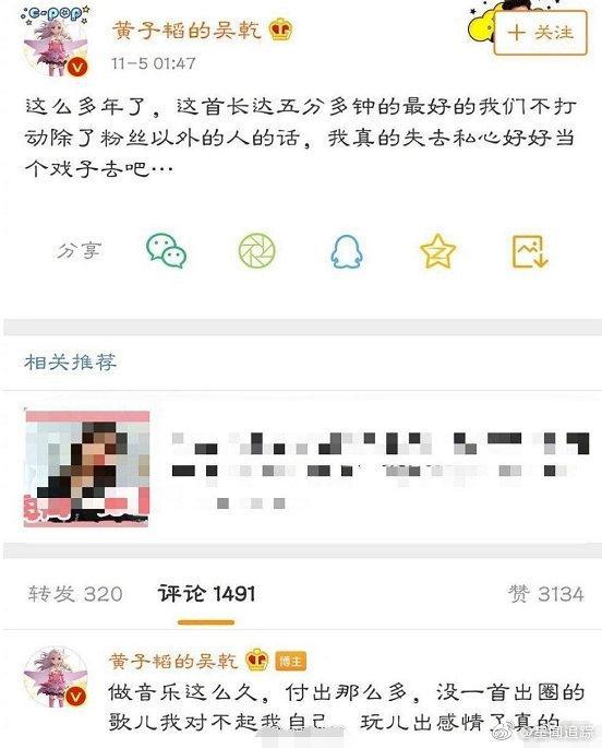黄子韬还在评论区继续表示,做音乐这么久,没有一首出圈的歌曲对不起自己。还称自己玩儿出感情了。