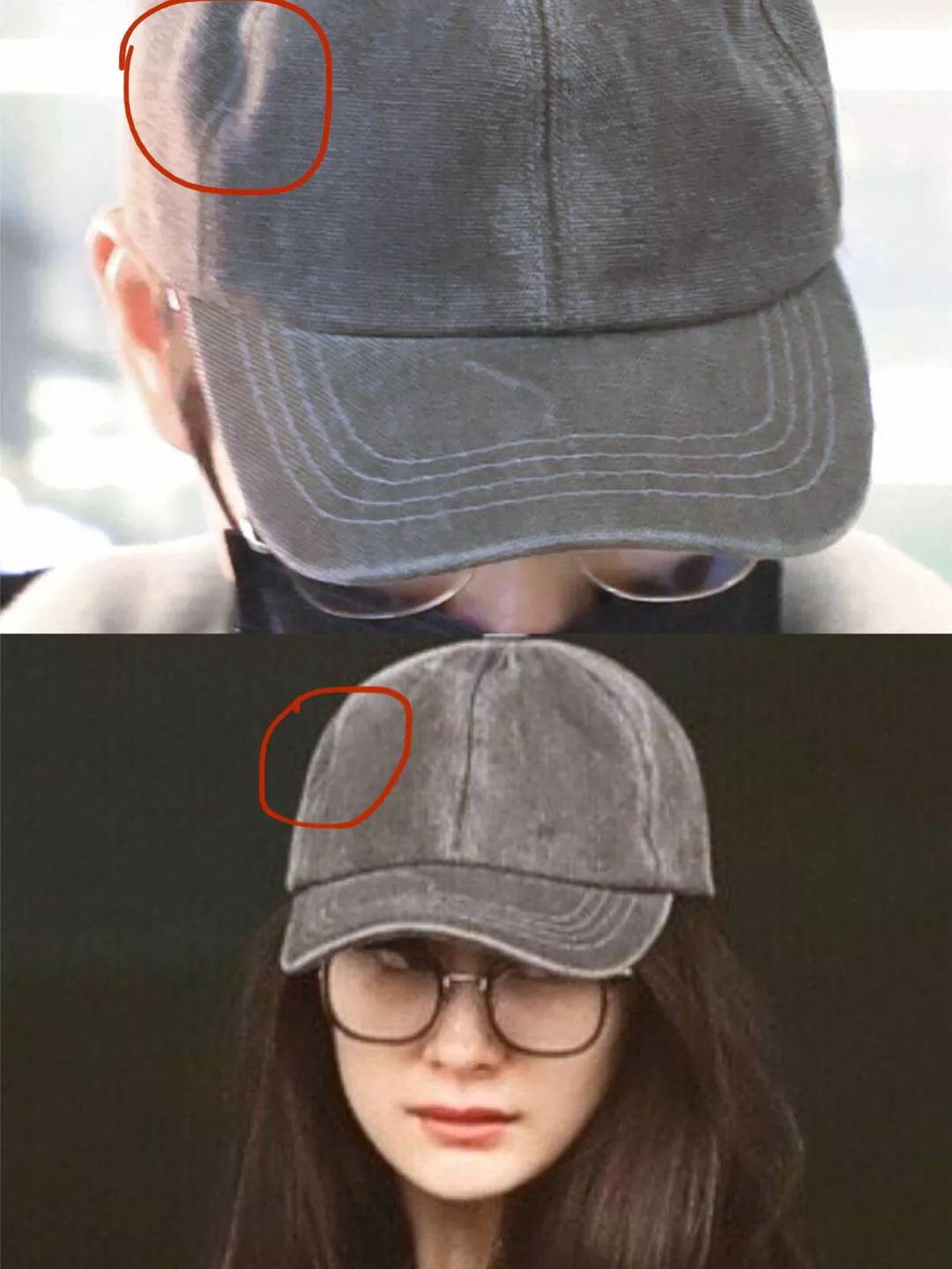 最近,网友们留意到两人都戴过一款灰色帽子。如果是同款帽子,可能只是巧合。但“名侦探”网友发现两人帽子上的白色划痕纹路是一样的。