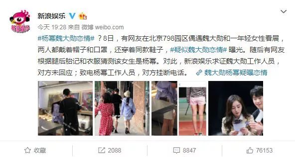 在媒体致电后半个小时,魏大勋主动发博澄清:“只是跟朋友逛个街”。