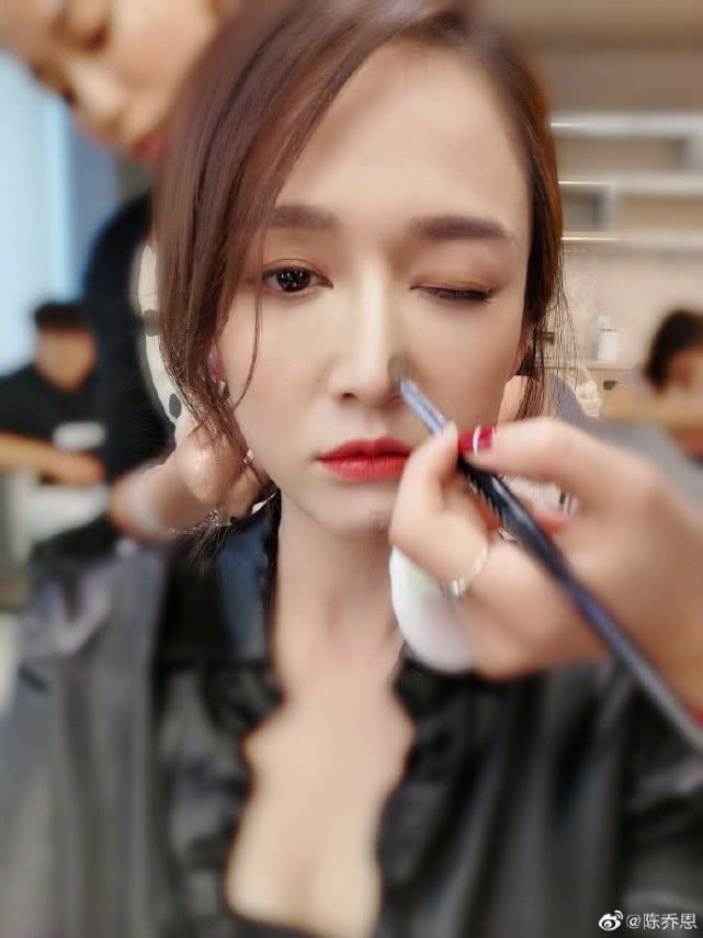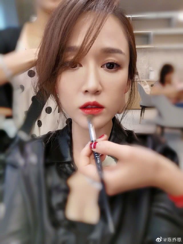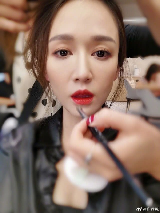 照片中,陈乔恩端坐在镜子前,有工作人员为她化妆打扮。近照视角下, 皮肤白皙,细腻光滑,保养得很好。娇俏的瓜子脸显得少女感十足,一口红唇更是娇艳欲滴,尽显娇媚可爱。这样的陈乔恩,颜值妥妥在线,不愧是偶像剧女王啊,充满青春气息。