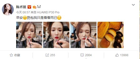 12月7日,陈乔恩更新社交动态,晒出一组自己化妆的照片,并配文写道:早安,面包我只是看看而已。看来陈乔恩为了保持身材,竟然连早饭也不吃,真是很拼了。没想到圈内的女明星们对于自己的饮食控制的这么严格,拒绝美食诱惑,以至于才能拥有纤细身材,完美展现在镜头中。