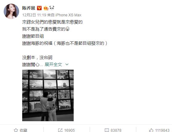 原标题:陈乔恩公布恋情后晒照,为保持身材不吃早饭太拼,被网友催生