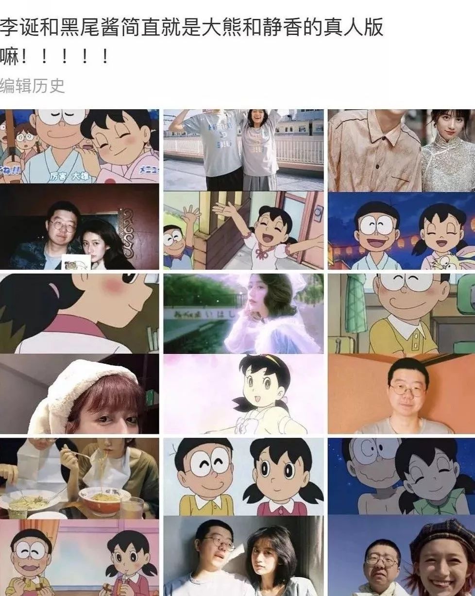 而他最受人关注的莫过于他的感情生活了,他和女友黑尾酱还被称作大熊和静香的真人版。