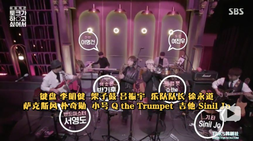 现场乐队配合烘托整体氛围,景别的来回切换,彰显了百脑汇式戏剧的情节变换。嘉宾落座后的短短两分钟内,节目就频繁的切换了五种以上的不同视觉效果,完全体现了韩综整体较高的审美水平。
