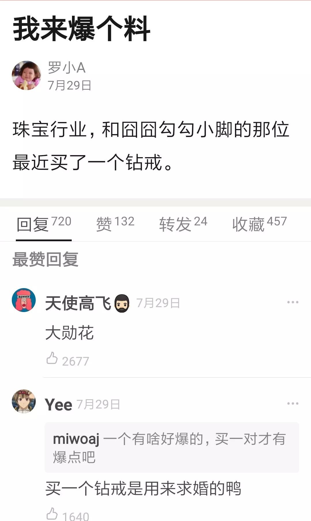 在7月底的时候,有珠宝行的人出来爆料,说魏大勋买了钻戒。