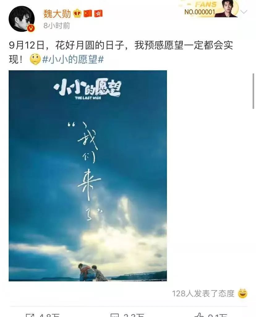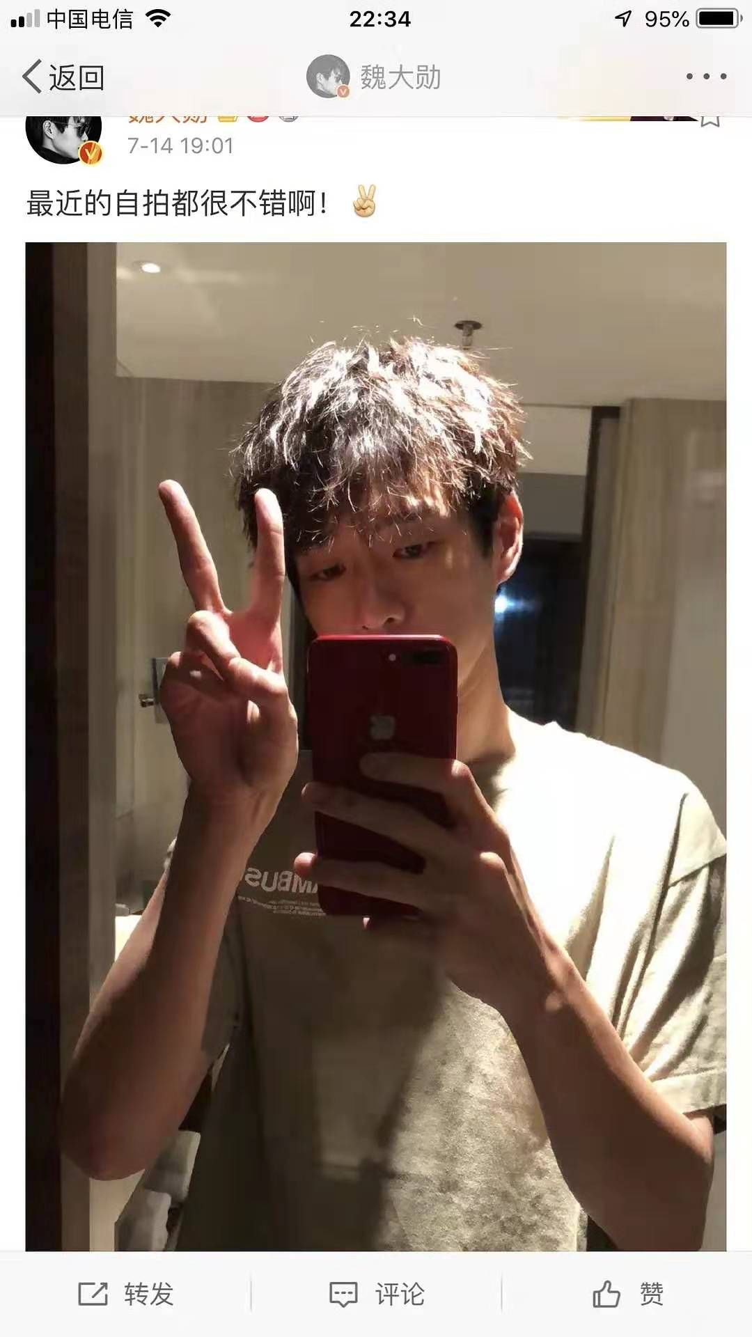 ennnn,虽然没有公开吧,但魏大勋当天发了一个微博,虽然是带着他当时电影的宣传话题,但文案的内容,很值得细品!