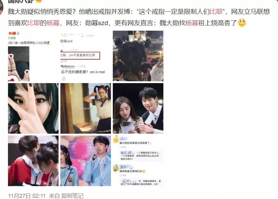 而细心的瓜农则表示:大幂幂≈小杨杨=xyy