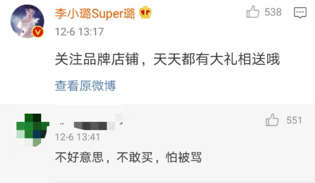 在评论区,李小璐也留言道:“关注品牌店铺,天天都有大礼相送哦。”可惜网友并不买账,评论区里骂声一片。你怎么看?
