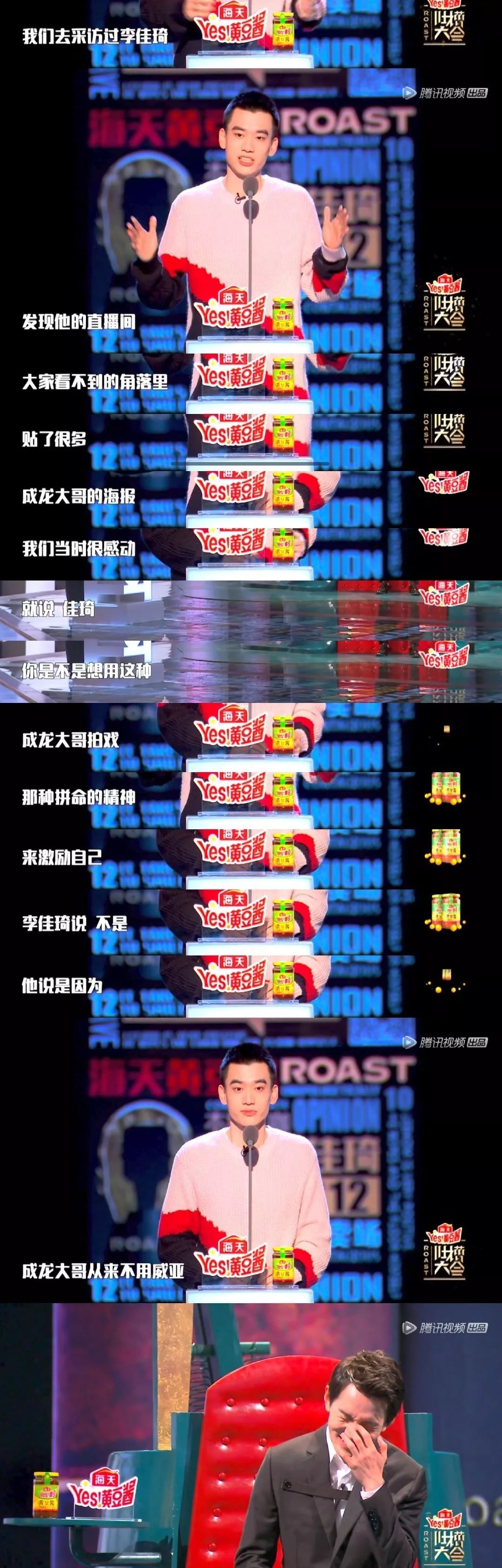 上一期的主咖李佳琦就遭受到了现实的“毒打”,庞博踩爆禁区,cue到了佳琦的竞争对手薇娅,贡献了近期网络上好笑的一个原创段子之一,成龙大哥不用威亚。