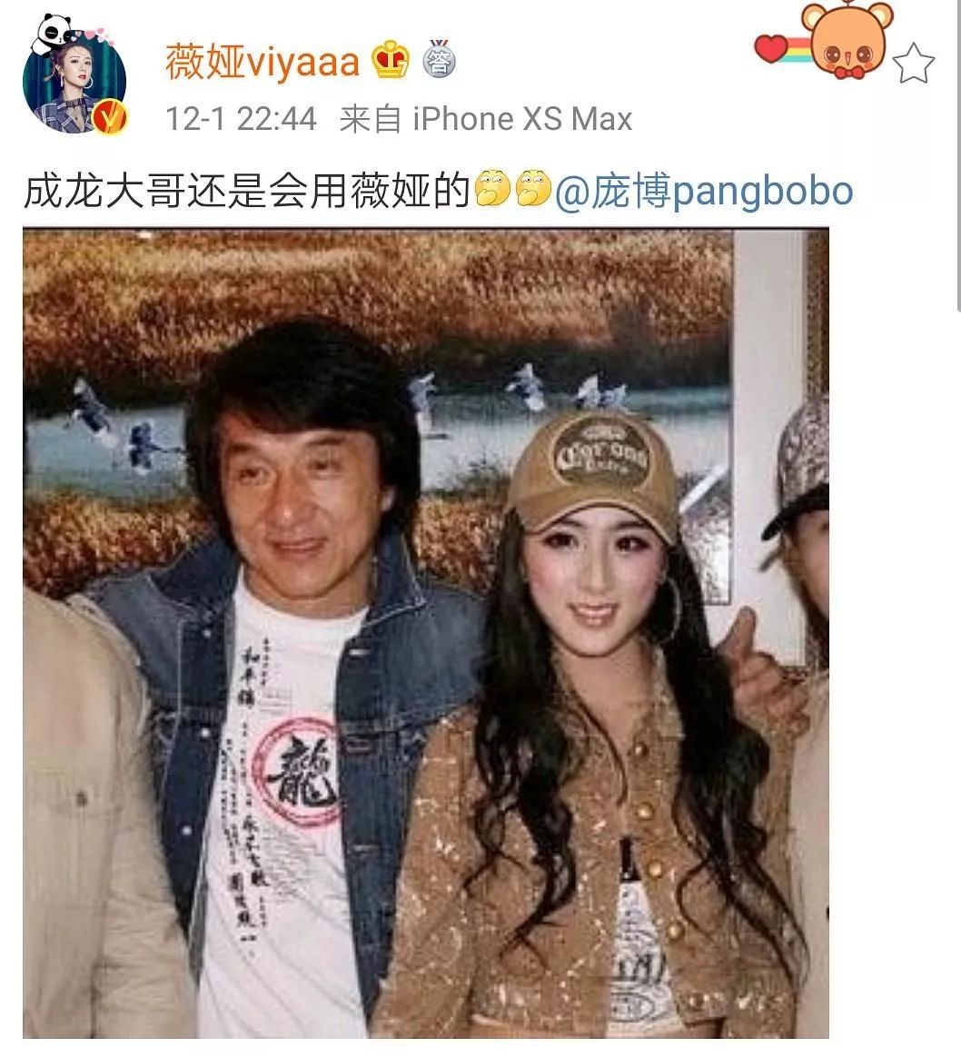 这段子居然还有后续,薇娅发博回应,晒出和成龙大哥的陈年旧照,还@了庞博:“成龙大哥还是会用薇娅的”。